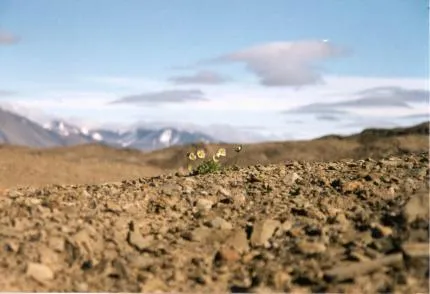 Även på Svalbard finns det blommor, den här växte i en gammal moränavlagring från Paulabreen, ett par mil från gruvsamhället Svea vid van Minjdenfjorden.