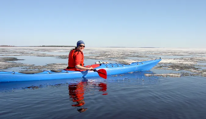 Det är skitkul att paddla bland issörja och lösa flak! När isen gick upp på Träsket en vår lekte jag runt i kanten genom att med fart åka upp på pip-isen, kliva ur kajaken och testa hållfastheten på underlaget genom att hoppa jämnfota! ;-)) Det höll för det mesta! Fast det måste tilläggas att jag förutom flytvästen hade våtdtäkt och paddeljacka på mig!