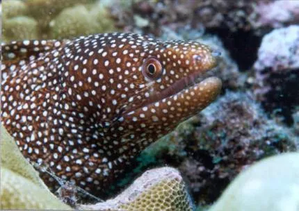 ...en muräna som gärna lät sig fotograferas. Muränor är tacksamma motiv när man fridyker och inte har så lång tid på sig under vattnet.