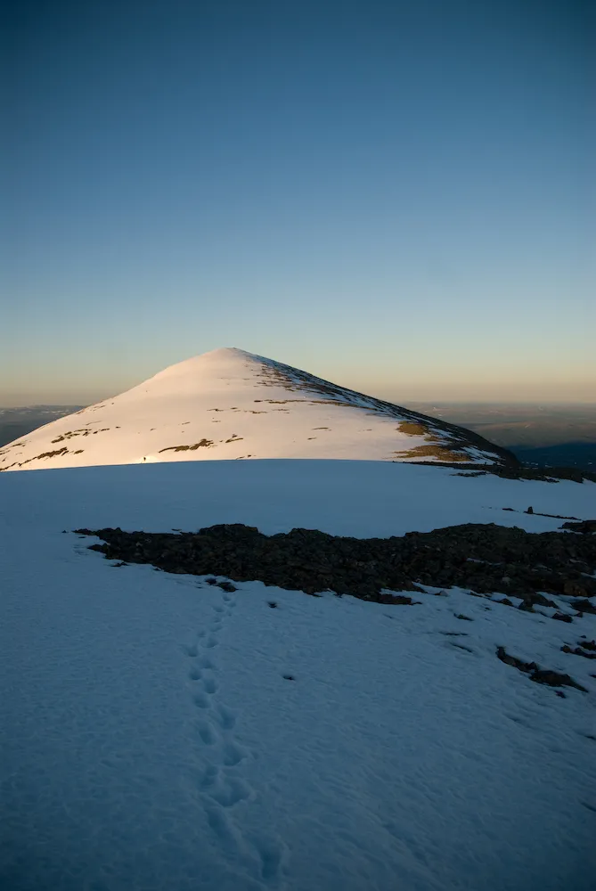Trodde jag i alla fall, att det sedan skulle ta en evighet (kändes det som) att nå toppen i alla snö reflekterade jag inte så mycket över vid det här ögonblicket. Var vid ett flertal tillfällen på väg att vända, den här delen upp till toppen tog lika mycket på benen som de 800 höjdmeterna jag hade avverkat tidigare.