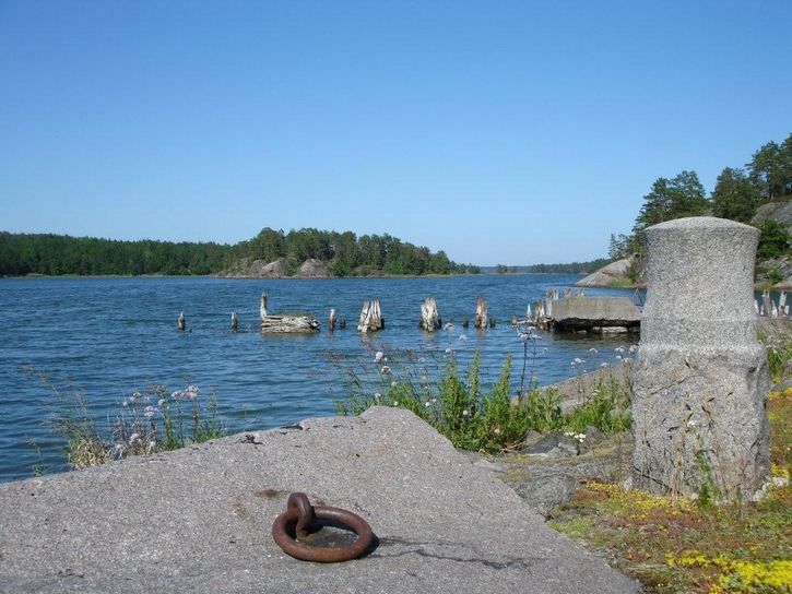 Hålviken var förr en utskeppningshamn för sten. Rester av hamnen finns kvar och här var det skönt med ett dopp i värmen.