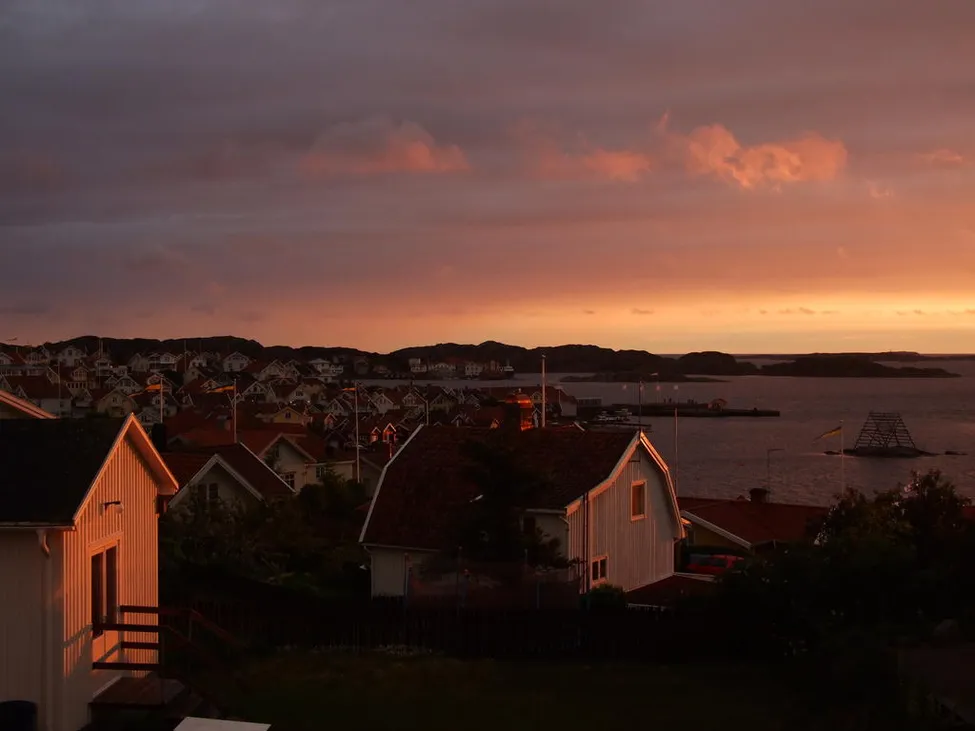 Utsikten från vandrarhems rummet efter en dag med regn och blåst.
