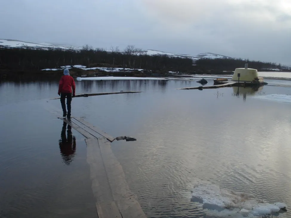 Lite högt vattenstånd, annars fint ordnat med landgång ut till röset.