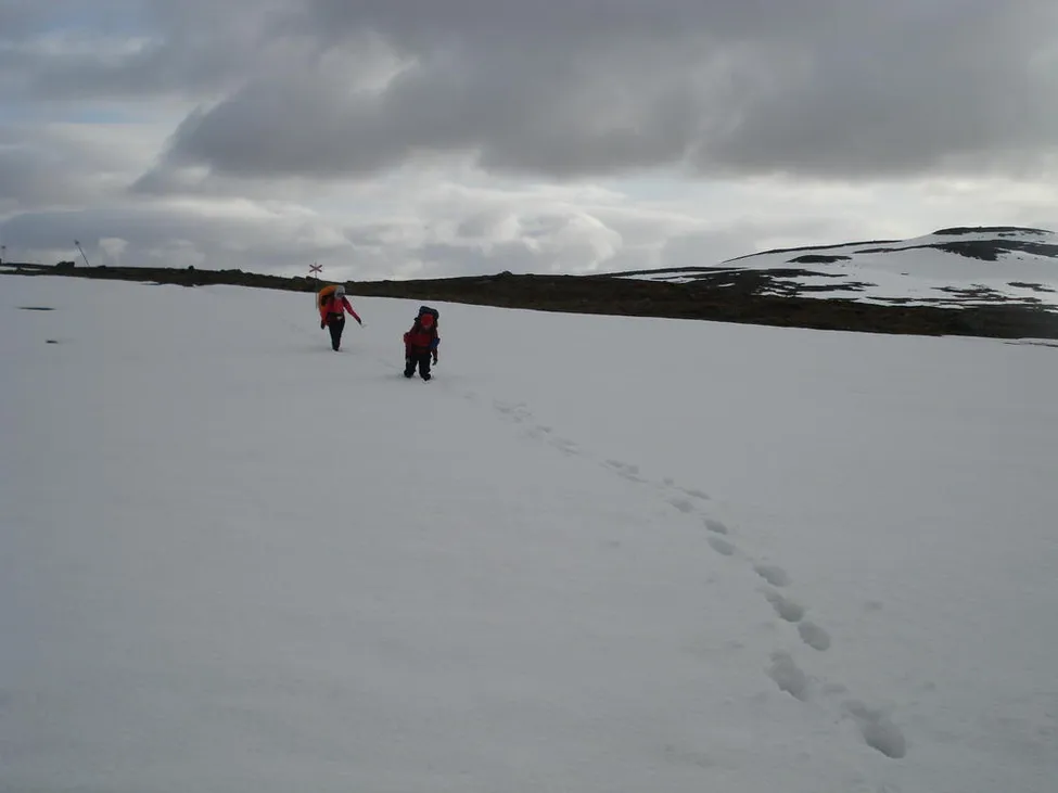 På leden mellan Pältsa och Treriksröset var det mycket snö kvar, ibland bar den ibland inte :), tungt och blött.