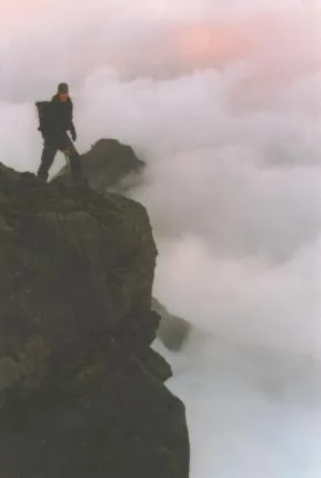 Kvällsolen ger molnen i bakgrunden det orangea skenet. Vi övernattade på toppen.