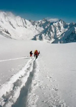 Från toppen av Aguille du Midi, Chamonix(Fr). Mycket nysnö sas det 2meter nysnö gör det svårt att få upp farten...