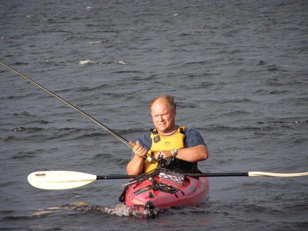Fem abborar, två gäddor och en öring var resultatet när en streamer fick hänga efter kajaken