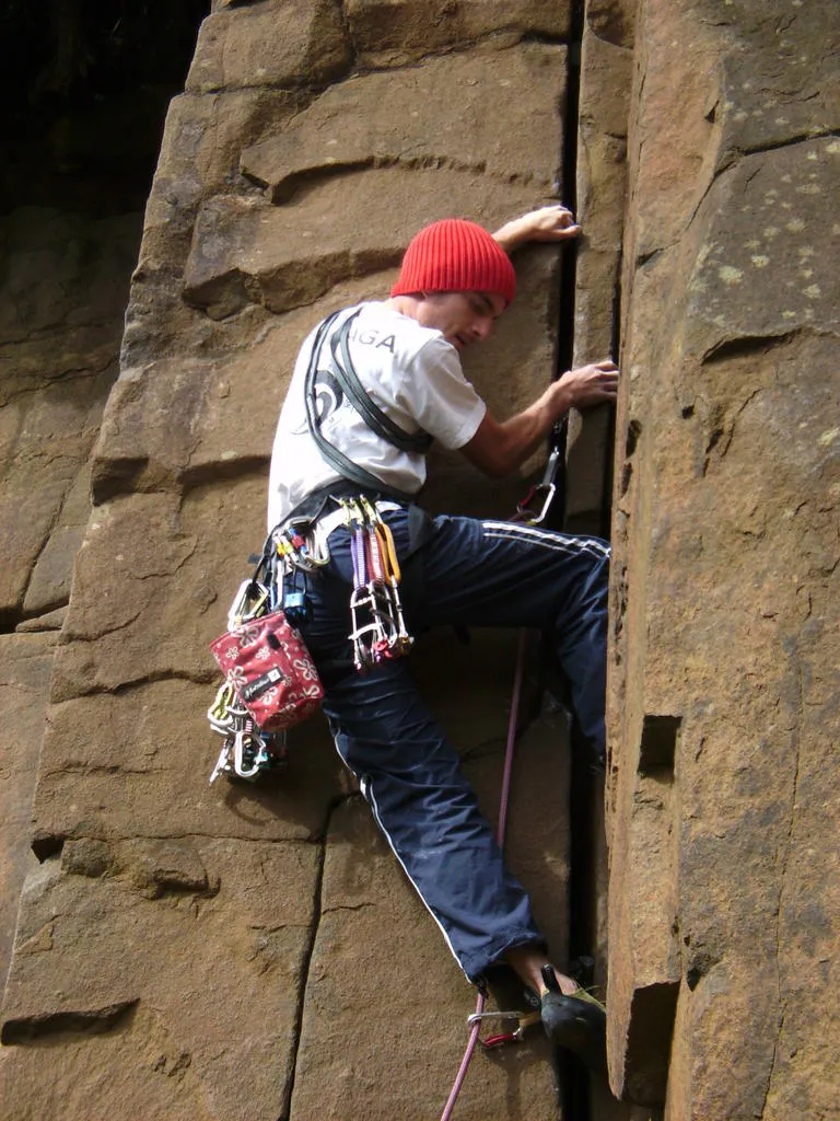 Christian Svensson klättrar "Chemical Warfare" i Rosyth Quarry, Aberdour, Fife, Skottland.