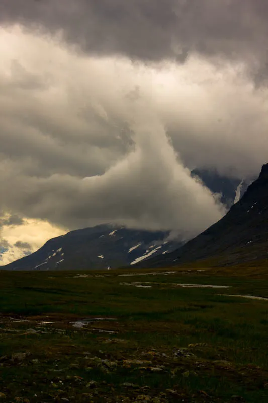 Molnen driver ut från Álggavágge.