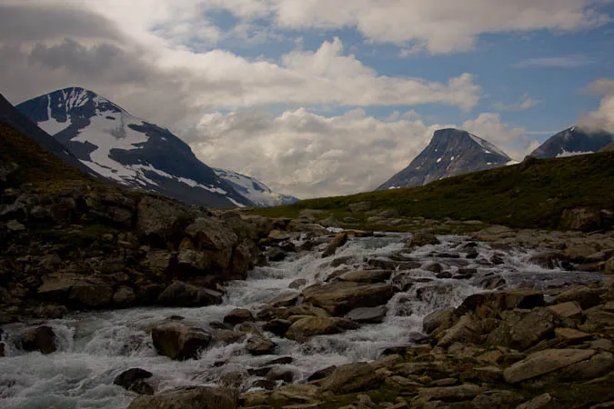 Guohpersjåhkå. I bakgrunden Lánjektjåhkkå och Guohper. Mot väster