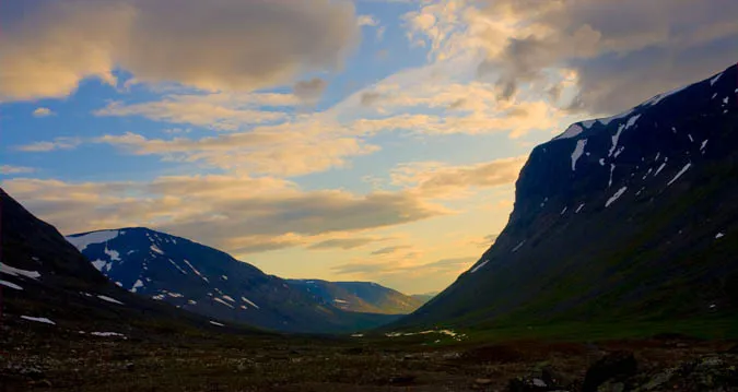Álggávagge. Härrábákte från till höger. Till vänster Sarvestjåhkkå och Áhkkátjåhkkå