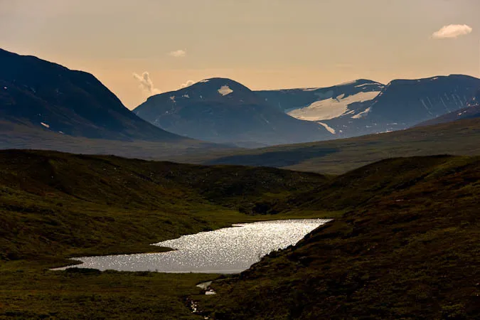 Sjnjuvtjudisjávrásj. I bakgrunden Niják, Boajsátjåhkkå
