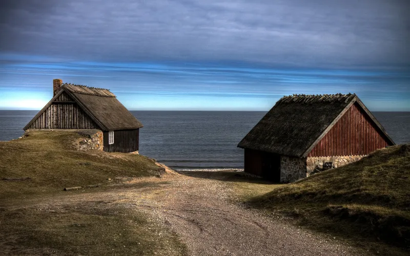 Digitalbildskommentaren väntade jag på, retuschera. Hjulspåren kommer av att bodarna brukas till kustfisket. Nät och fångst körs hem den vägen. IMHO är hjulspåren ett bevis på levande verksamhet, men smaken är som baken.....