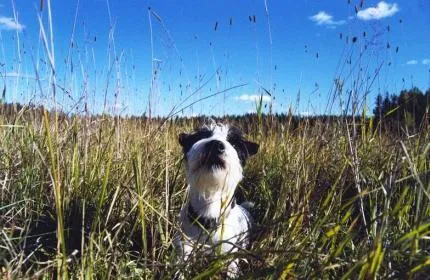 Min hund på en sommaräng. Här tycker hon om att springa och busa.