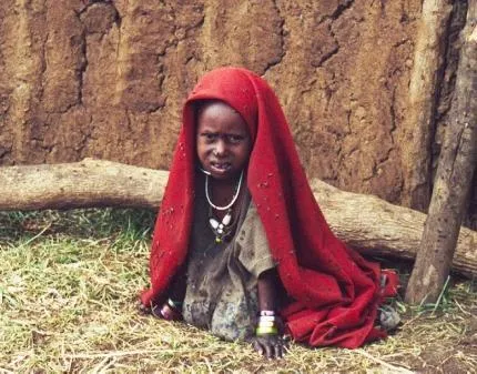 Ett litet barn i en masajby i Ngorongoro Conservation Area.