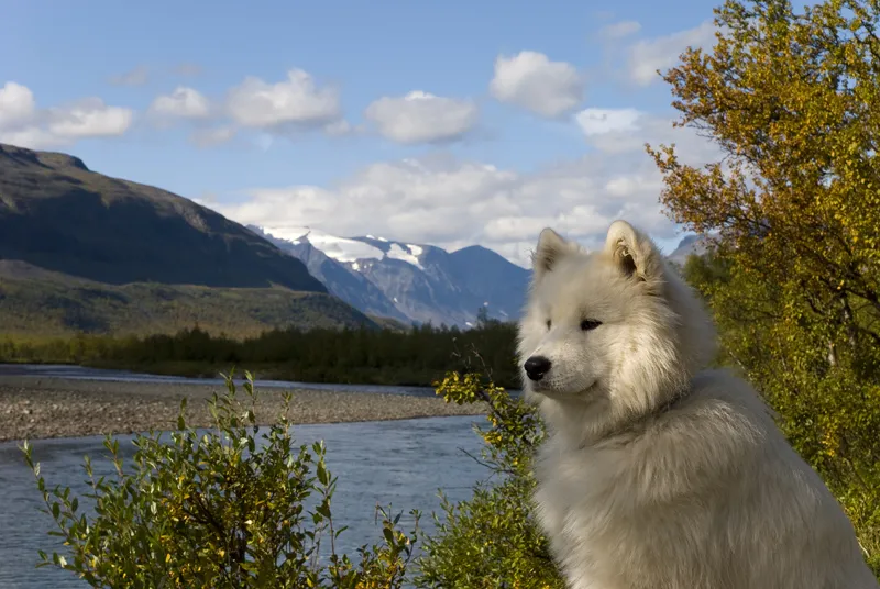 Mycket tjusig bild:-)) Fin hund & fina fjäll!
