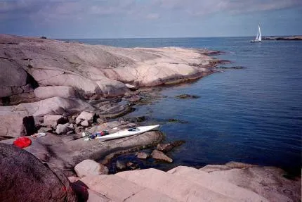 Skyddad vik med fina klippor med närhet till öppet hav. Bättre övernattningställe en skön sommarkväll finns inte.