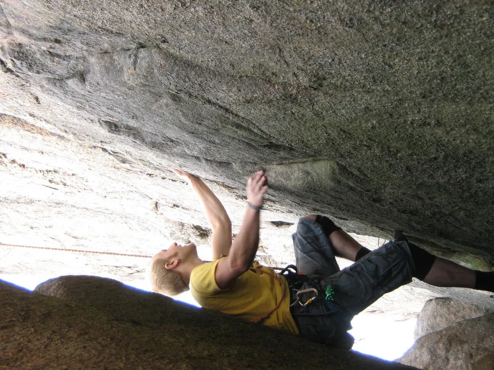 kaminklättring på övre väggen vid brappersberget i bohuslän.