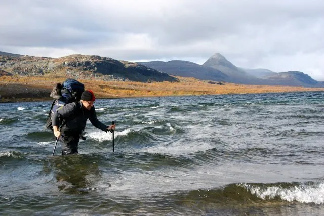 Jag vadar förbi en jokk vid Pietsaure sameviste. Bilden är tagen av min kompis Fredrik.
