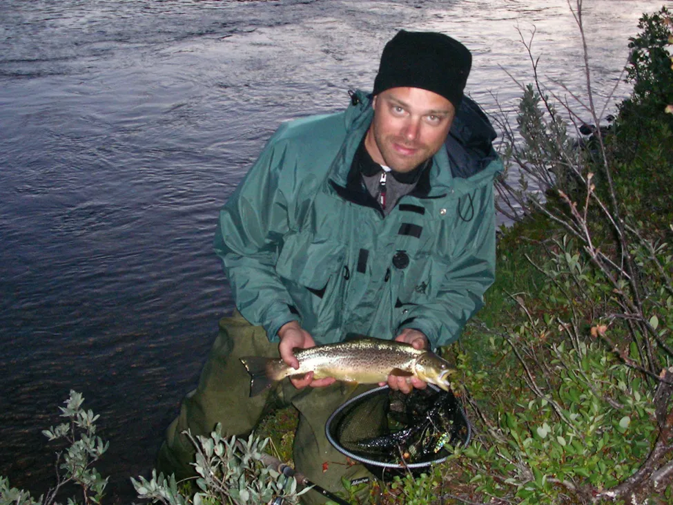 Peter med en av sina fina öringfångster. De rejälare öringarna nappade företrädesvis sent på kvällen.