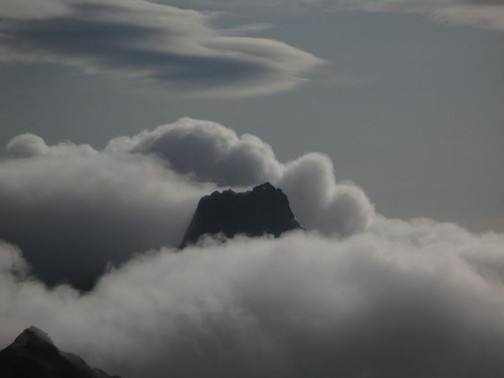 Ger intryck av storslagenhet och ointaglighet på nått vackert sätt. Man vill verkligen se mer av vad som döljs runtom och nedanför, vilket ger bilden en strimma magi och skapar nyfikenhet.