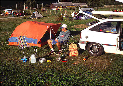 Vad gör man när man inte åker skidor i Stryn - förutsatt att det inte regnar förstås... Jo, softar med fulsprit, öl och ravioli på burk framför norra Europas minsta tremanstält.