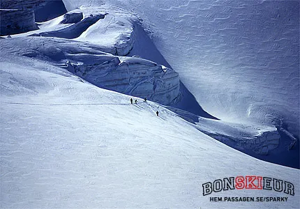 Bortvillade turister från "fel" sida berget - Les Deux Alpes irrar runt bland sprickorna på Glacier de la Girose ovanför La Grave.