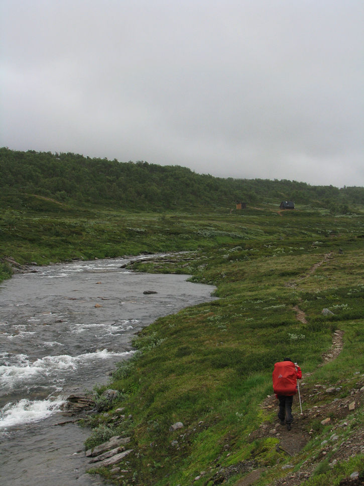 Mycket vatten tyckte vi. Men det var fullt möjligt att vada. Gott med vindskyddet på andra sidan. Där fick vi kvällsmat och torkade lite innan vi kröp in i tältet.