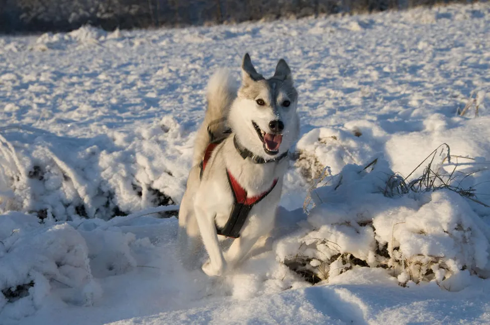 Det är lite skillnad i hundarnas uppträdande mot regn och slask, de verkligen älskar snö!