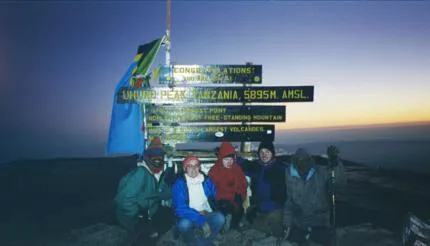 Uhuru Peak nåddes ca 15 minuter före soluppgången den 1 januari. Lite slitna men väldigt glada.