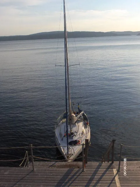 Storön- Höga kusten -09 med min båt Amorina2. (Och sovande hund på däck:)