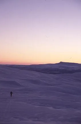 Sista december 2001. Mamma och pappa kom upp och hälsade på David och mig. Så ensamt och vackert som det bara är en midvinterdag när det kryper ner mot -30. En skön kväll i stugan och sen en kall nyårsnatt på toppen av Klöverfjället väntade oss. Jag är otroligt glad att ha föräldrar som vid nästan 60-års ålder älskar att sätta på stighudarna och gå ut på fjället.