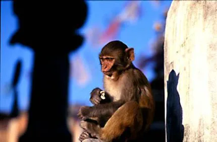 Apa vid Swayambunathstupan i Kathmandu, Nepal.