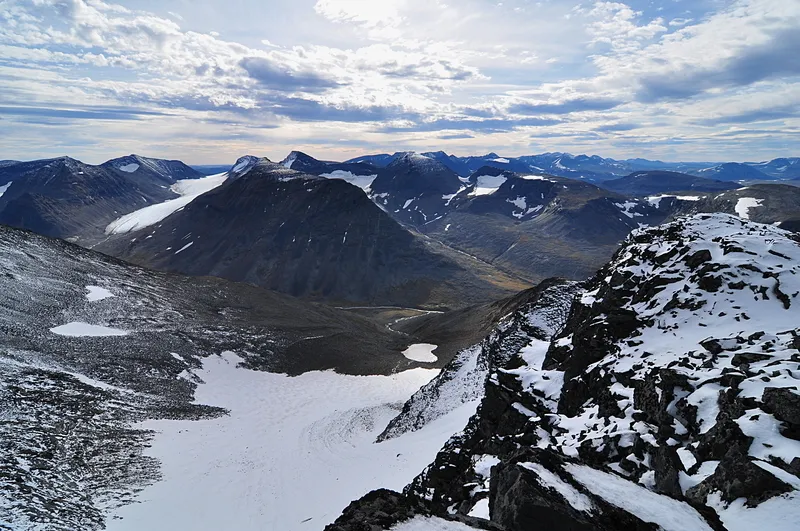 Bilden är tagen från toppen av Nilas kam rakt söderut mot Skårkimassivet.