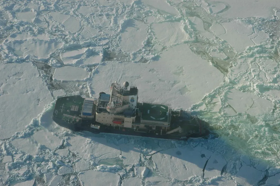 tagen från helikopter under is spaning på väg söderut efter avslutad expedition