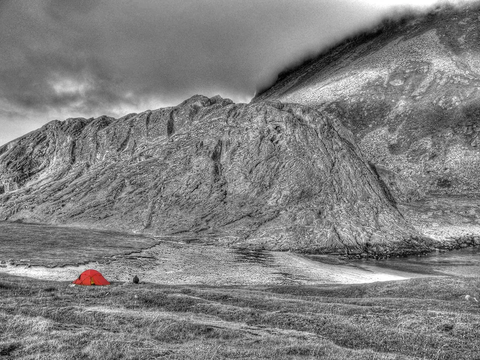 Funkar!! Stort plus för de mörka molnen som ramar in på ett lyckat sätt. Bergssidan med spännande struktur och de ljusa stråken gör också sitt för en lyckad bild.