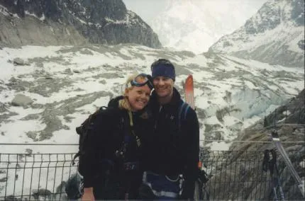 Annie och Jag poserar framför kameran efter en hård dag med Igloo bygge som huvudattraktion. Dagen innehöll ett fint åk i Valle Blanche