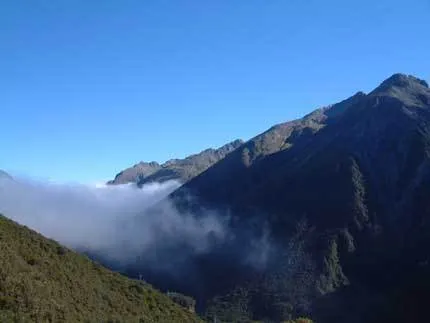 Morgondimman lättar i Arthurs Pass. En "snabb" tur (5 timmar...) upp på toppen av Avalanche Peak innan vi skulle vidare.