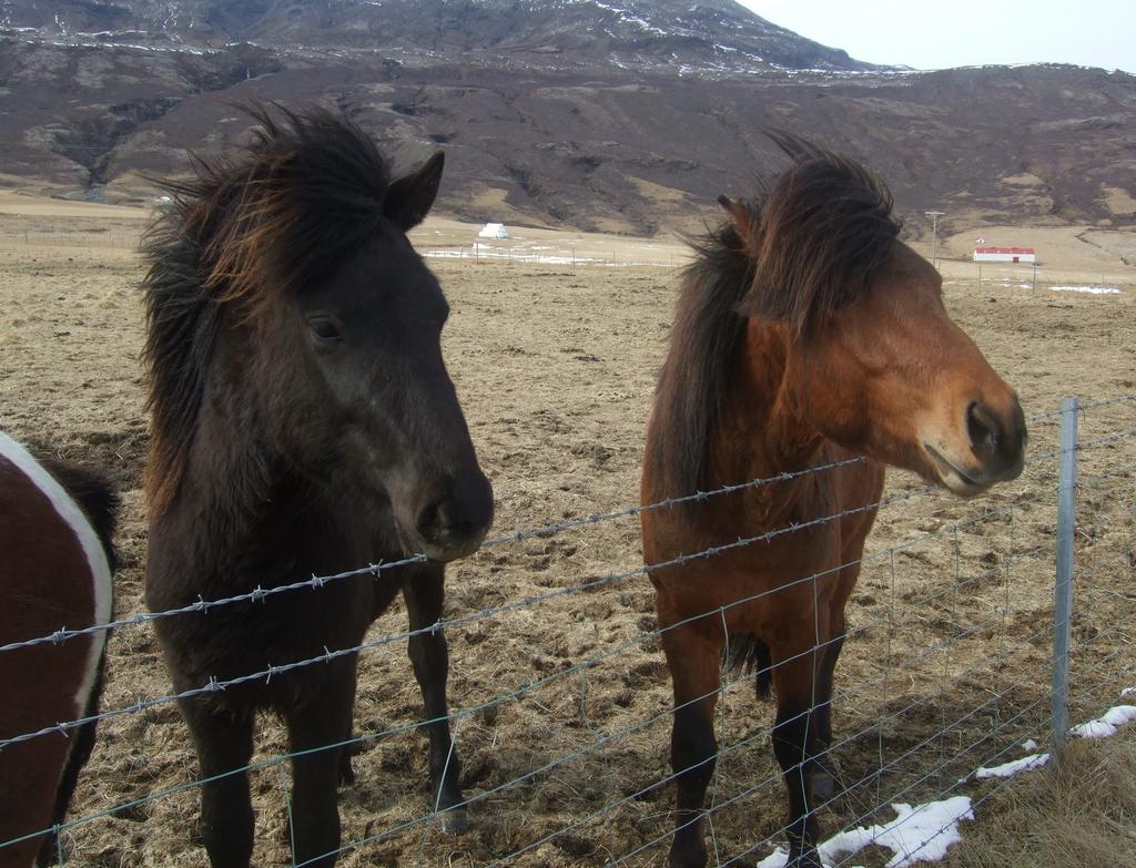 kul att se islandshästar i sin ursprungliga miljö. Bilden visar även hur nyfikna dom är.. Det är underbara hästar.