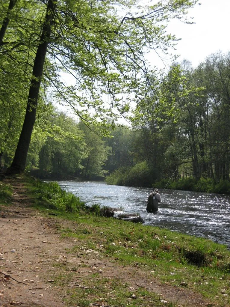 Lars vadar försiktigt ut mot en av ståndplatserna för Lax i Mörrumsån...