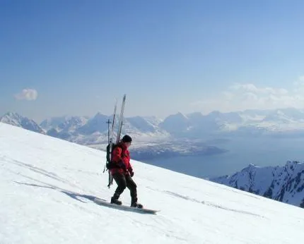 Snowboarding ved Lyngsalpene, Nord- Norge