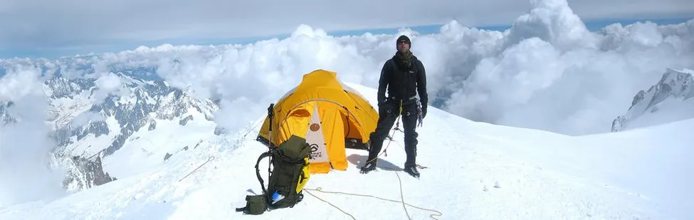Start i Chamonix på 1 030 möh. Fyra dagars klättring upp till toppen av Mont Blanc 4 810 möh. Tältning på toppkammen. Två dagar ner till Chamonix igen. Inga hyttor, inga liftar, inga guider. Alpin stil.