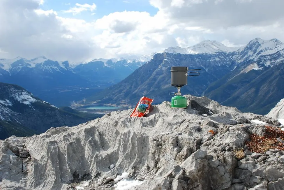 Scramblade upp till toppen och satte upp köket för lite utsikt och god mat!