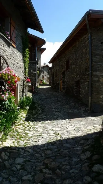 Vissa alpbyar behåller ursprungliga stilen eller bevarar det som finns kvar...Husen och vägen byggt i stenar. Mysigt och fint! Besse-en-Oisans.