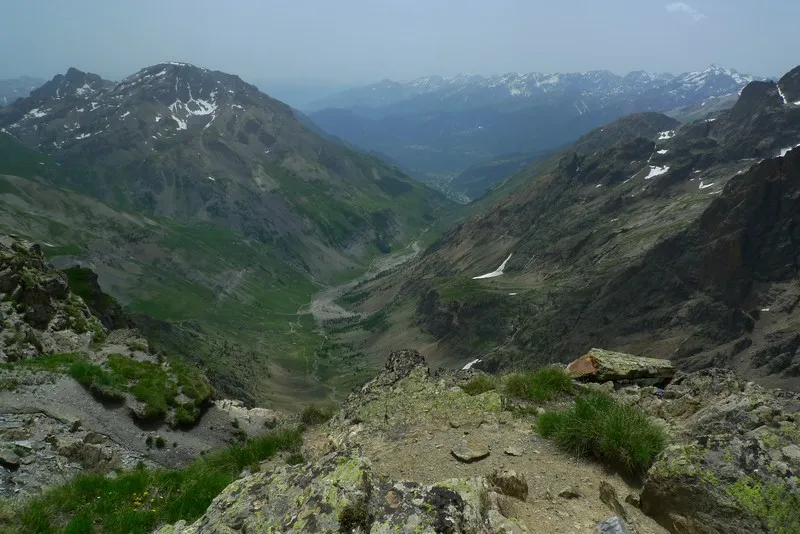 Utsikt mot dalen, Vallon de Chambran. GR54-leden går genom dalen och mot lilla skidorten Vallouise.