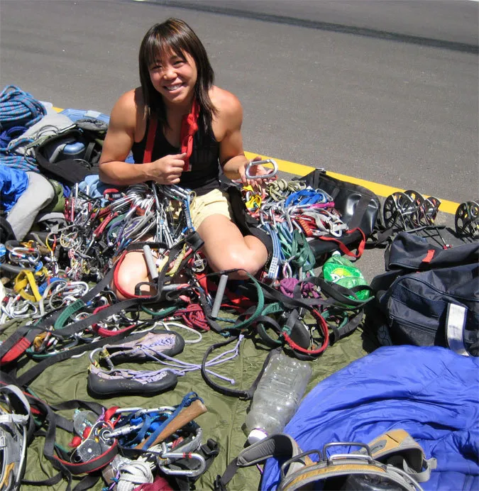 Christina sitter här vid vägkanten någonstans i Yosemite Valley och sorterar vår klätterutrustning efter en bigwall. Christina är en mycket talangfull och stark klättrare - hon har soloklättrat El Capitan tre gånger! Tillsammans har vi gjort flera stora turer och Chris har varit ett stort stöd för mej efter Ericas bortgång - man kan säga att Christina hjälpte mig på fötter igen efter några mörka år i mitt liv. Att få hålla Chris i mina armar fick mej att tro på framtiden igen. Till min stora sorg gick Christina bort i en klätterolycka den nionde juli 2010 - hon blev 31år.