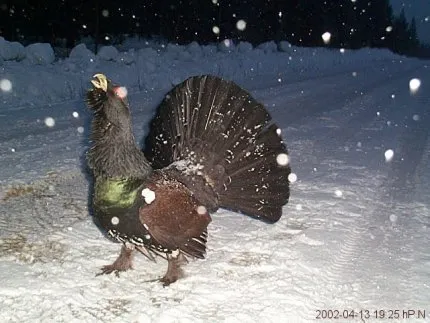 Tjäder i snöfall