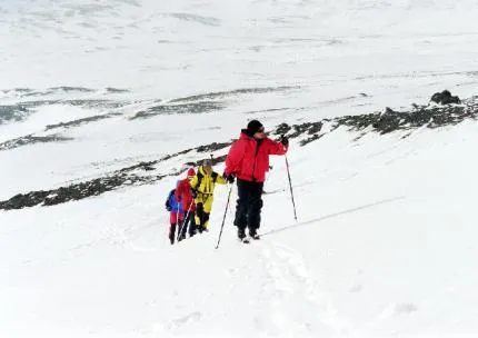 På väg uppför "personalbacken" mot Tarfala forskningsstation.