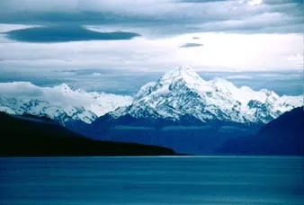 Tagen på kvällen på södra NZ.Berget är uppkallat efter NZ:s upptäclare Kapten James Cook