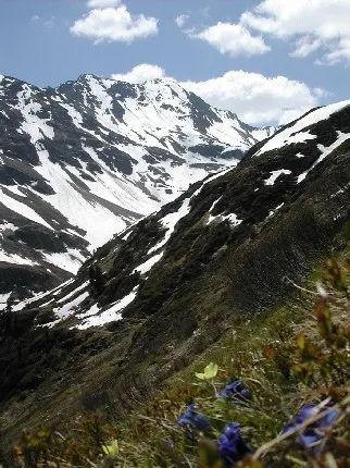 De första blommorna som syns, i backgrunden Gstanskopf.